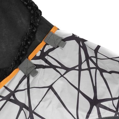 Combineert de eigenschappen van een lichtgewicht uitruk- en buitendeken in één. Het monochromatische patroon kan een eenvoudige manier zijn om paarden te beschermen door te helpen voorkomen dat vliegen op hun lichaam landen.