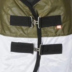 Zachte fleece voering over de schoft, bij de borst een T-sluiting en klittenband, kruissingels en een staartriem met D-ring. Stof: