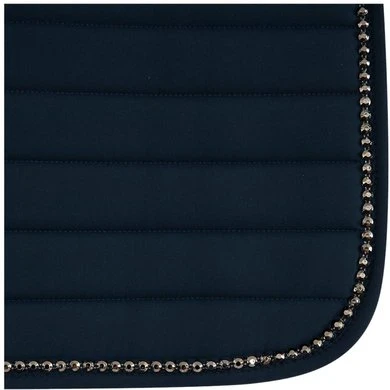 Dit luxe, anatomisch gevormde wedstrijdzadeldek heeft een vochtregulerende polyester airflow voering en een airflow rugnaad om de luchtdoorstroming te bevorderen. Het zadeldek heeft een schokabsorberende vulling en is afgewerkt met elegante studs. Voorzien van singel- en zadellussen van klittenband.