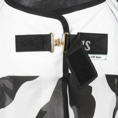 De Buzz-Off Rain is een gecombineerde regen-/vliegendeken. Een perfecte deken voor als warme en natte dagen elkaar afwisselen. De eigenschappen van de Buzz-Off vliegendekens en Sun Shower dekens zijn gecombineerd om de Buzz-Off Rain te creëren. Het bovenste gedeelte van de Buzz-Off Rain is waterproof en ademend, terwijl het onderste gedeelte is gemaakt van hetzelfde materiaal als de Buzz-Off vliegendeken. Er ontstaat dan een lichtgewicht, waterproof deken met UV-bescherming. De staartflap geeft extra bescherming aan de staart. De schouderplooien zorgen voor extra ruimte voor de schouders en de gladde voering bij de schouders is ter voorkoming van schuurplekken.  De deken heeft een T-haak borstsluiting met klittenband en is voorzien van een elastische en verwijderbare buikflap die ervoor zorgt dat de deken op zijn plek blijft liggen en de buik optimaal beschermt is tegen insecten en vliegen. De deken heeft een bilkoord en een staartflap. Er zijn bevestigingspunten aanwezig voor bilriemen (niet meegeleverd).