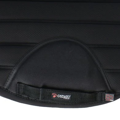 Het CATAGO Hybrid Icelandic zadeldek is gemaakt van functionele kwaliteitsstoffen en heeft de bekende vorm van een CATAGO zadeldek dat wrijving langs de wervelkolom voorkomt. De binnenkant van het zadeldek is bedekt met de functionele Hybrid stof met Graphene print. Het grafeen maakt de stof thermoregulerend, zodat de warmte van het paardenlichaam gelijkmatig over het stofoppervlak wordt verdeeld om koude plekken of oververhitting te voorkomen. De stof is ook zeer ademend en laat overtollige warmte ontsnappen, het is antistatisch. De grafeenprint is gemaakt van koolstoffragmenten die energie sturen en de statische elektriciteit wordt weggeleid van het paard/vacht. Het mesh-kanaal langs de wervelkolom zorgt voor extra ventilatie. Het neopreen zorgt voor extra schokabsorptie en verdeelt de druk van het gewicht van de rijder. Met D-ringbanden Buitenstof: 100% polyester Binnenstof: 91% polyester en 9% spandex