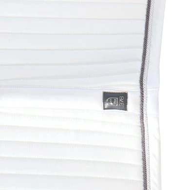 Zadeldek met horizontaal gestreept stiksel. Twee kleine, contrasterende gekleurde koorden omlijsten het zadeldek.