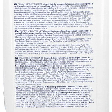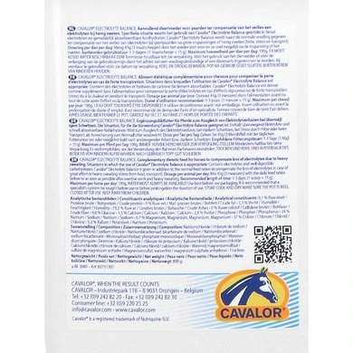 Smakelijke mengeling in poedervorm van elektrolyten. Met Cavalor Electrolyte Balance kunnen tekorten aangevuld worden die ontstaan tijdens zware inspanningen.Â