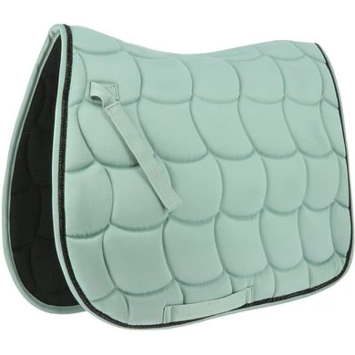 Sjabrak van glanzend satijn polyester met 200 g / m2 polyfill en 10 mm schuimvulling met honingraatkatoen voering. Klittenband en singellussen. Versierd met een decoratieve band van zwarte glitter.