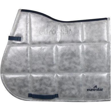 Zadeldek van glitterstof met stevige bindingen en grote vierkante stiksels. Siliconen euro-star tekst zorgt ervoor dat het zadeldek niet verschuift onder het zadel. Borduurwerk op de hoek. De bevestigingsriemen hebben een speciale sluiting: snappers.