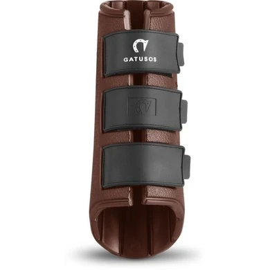 Gatusos voorpeesbeschermers Royal model. Paar professionele voorbeschermers in innovatief gepatenteerd materiaal EVA GUMFLY (Ethylene Vinyl Acetate). Gemaakt uit één stuk antibacterieel schokabsorberend materiaal, dus naadloos, met een anatomische schaal voor een uitstekende pasvorm en met een extra resistente dubbele klittenbandsluiting. Dankzij het speciale materiaal zijn ze gemakkelijk te wassen en te drogen, zeer resistent en gaan ze lang mee.
