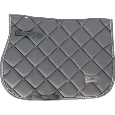 HB Showtime anatomisch zadeldek. Anatomisch zadel dek met een mooie pasvorm onder het zadel. Katoenen buitenstof met gestept St logo. Binnenzijde van dit dek is gevoerd met cool Max voering. Dit voor een betere vocht opname en warmte regulerend. Met 2 kleurig fantasie koord.