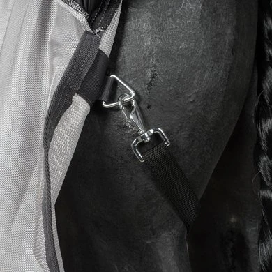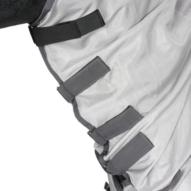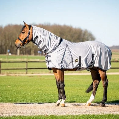 Luxe vliegen deken met elastisch stuk tussen hals en deken.