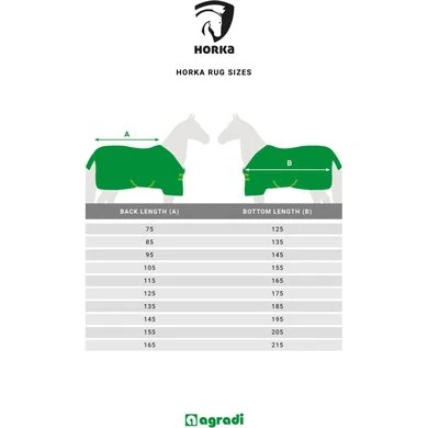 De Horka fleece cooler anti-vlieg is een lichtgewicht vliegendeken met een goede zweetregulatie door het jersey fleece aan de bovenkant en anti-vliegen mesh materiaal aan de onderkant (100% polyester). De deken heeft een enkele sluiting aan de voorkant met klittenband, kruissingels met elastiek uiteinde en rubber stops, afneembare en elastische bilriemen en een bilkoord. Daarnaast heeft de deken een fleece gevoerd schoftbondje.