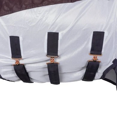 Nooit meer twijfelen welke deken jouw paard op moet in het voorjaar en zomer! Dit 2-in-1 deken biedt naast een geweldig draagcomfort ook bescherming in verschillende weersomstandigheden. Bij een zomerse bui blijft jouw paard droog door de waterbestendige top laag (voorzien van de welbekende Imperial Riding bloemenprint!). Bovendien maakt het lichtgewicht en ademende mesh-materiaal het een perfecte vliegendeken. De deken heeft een dubbele buikflap en is voorzien van 3 singels om de buik 2 elastische achterbeen banden ergonomisch gevormde staartflap en beenplooien voor maximale bewegingsvrijheid. Met het gespsysteem en klittenband op de borst blijft deze deken perfect op zijn plaats. Kortom deze water- en insectbestendige deken is een echte must-have voor jouw paard!