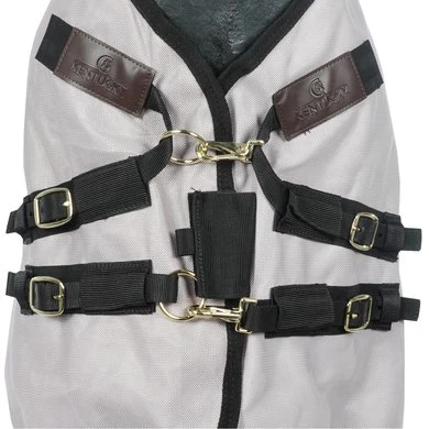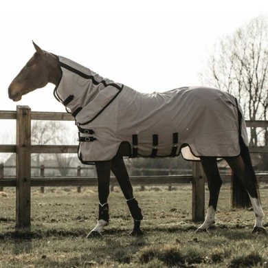 Het Vliegendeken biedt uitmuntende bescherming tegen ieder insect. Hierdoor is het deken zeer geschikt voor paarden met een gevoelige huid. Het deken is uitgerust van een speciale driepunt sluiting. Deze sluiting vermindert de druk op de borst en schoft, waardoor het comfort niet verstoord wordt tijdens het grazen. Voor extra bescherming is er een halsdeel bij het deken.