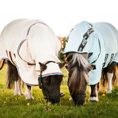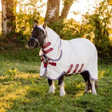De Rambo Petite Hoody is een vliegen/eczeemdeken gemaakt van sterk, duurzaam 1000D ademend polyester om de kleinste vliegjes/mugjes af te weren. Daarnaast is de deken UV-werend. Deze deken wordt geleverd compleet met vaste hals en ooruitsparingen en kan een bijdrage leveren voor pony’s met zomereczeem. De deken is voorzien van een V-Front sluiting op de borst, klittenbandsluitingen op de hals, een buikflap met drie singels een bilkoord en een extra lange staartflap en zijkanten.