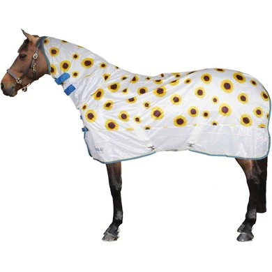 De Tempest Original vliegendeken met zonnebloemprint is gemaakt van een strak gebreide mesh-stof die een barrière vormt tegen bijtende insecten en toch licht en luchtig blijft, waardoor het paard comfortabel blijft bij warmer weer. De ademende stof helpt voorkomen dat het paard oververhit raakt en vermindert het risico op zonnebrand en verbleking door de zon. Verdere kenmerken: 80% UV-blokkering*. Ultra-ademend. Bleekmiddel tegen de zon. Licht en luchtig. Borstbanden met gesp. Verstelbare filetband.*Effectiviteit kan na verloop van tijd afnemen. Test uitgevoerd in overeenstemming met BS EN 13758-1:2002+A1:2006.