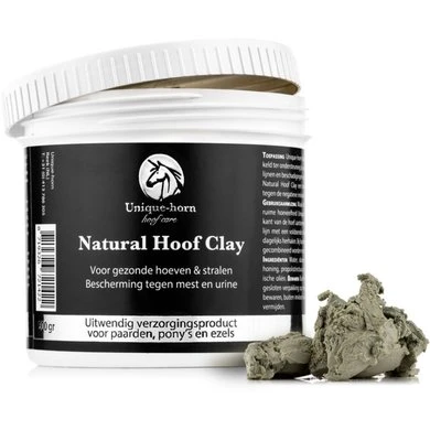 Ook vormt Unique-horn Natural Hoof Clay een natuurlijke barrière aan de onderkant van de hoef ter bescherming tegen de negatieve invloeden van mest en urine op de hoef.