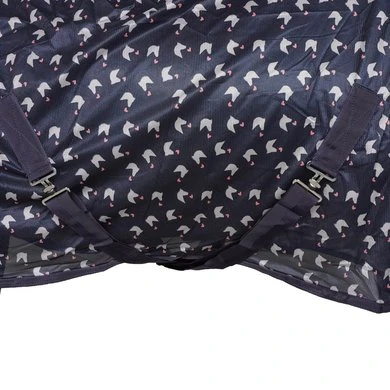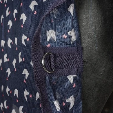 Lichtgewicht vliegendeken met lieve all-over print, met dubbele voorsluiting, gekruiste banden met elastiek en bilkoord.