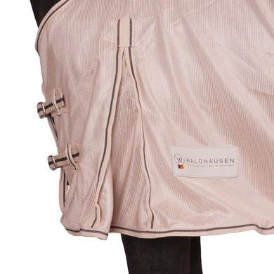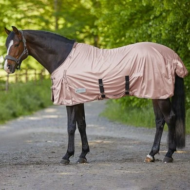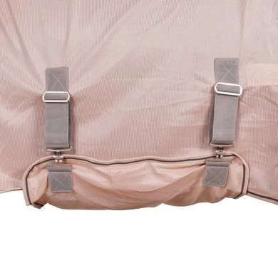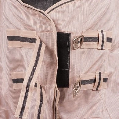 Hoge kwaliteit vliegendeken gemaakt van een fijnmazige stof. De buik- en staartflappen van de deken zorgen voor bescherming tegen vervelende insecten. De dubbele voorsluiting, schopplooi, filetkoord en beenriemen garanderen een perfecte pasvorm. Voor extra bescherming van de nek en manen van het paard adviseren wij het bijpassende nekdeel 44978529 .