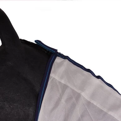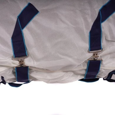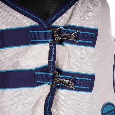 De Weatherbeeta Comfitec Airflow II Combo Neck is van zacht, duurzaam polyester-gaas materiaal en heeft een nieuwe Ultra-buikvlap en volledige omslagstaartvlap voor premium bescherming. Daarnaast heeft de deken en elastische inzet bij de schoft voor extra comfort tijdens het grazen. De Ezi-Clip voorsluiting en de traditionele zijvouw voor natuurlijke beweging maken de deken compleet. De schouders zijn zacht onderlegd met gevoerd elastisch nylon materiaal. Ook de manen en staartflap en elastische zijn met nylon materiaal onderlegd. De deken heeft verstelbare en afneembare beenriemen. Bovendien biedt de deken 70% UV-bescherming.